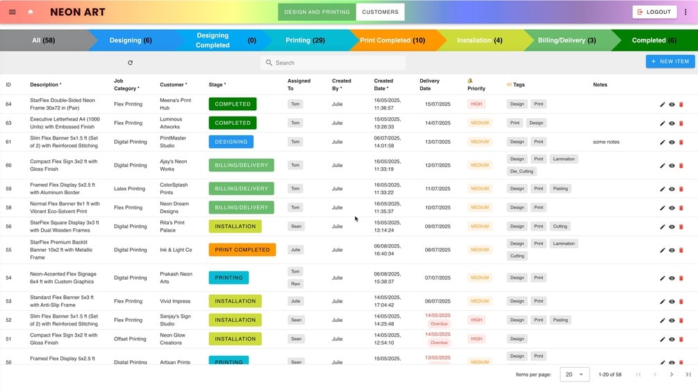 Discover a powerful, free CRM for art and printing businesses built on Google Apps Script with Google Sheets as the backend! This multi-user workflow management system offers role-based access, real-time project tracking, and a stunning dashboard with stage-based pipeline visualization. Perfect for design and printing companies, this zero-cost solution streamlines operations from concept to delivery. Watch the full demo to see how Neon Art uses it to manage projects, customers, and teams efficiently.