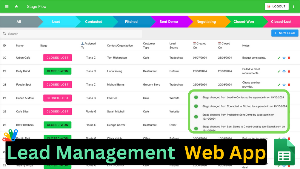 Build and customise Lead Management Web Application using Google Sheets in few simple steps.